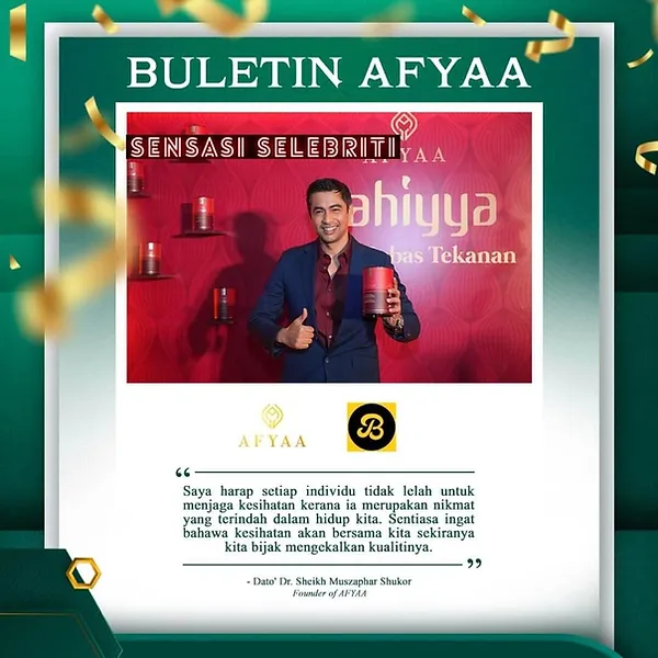 SAHIYYA diasas daripada Dato Dr.Sheikh Muszaphar (Angkasawan Malaysia) dan khasiat Sahiyya telah diperakui dengan ramuan yang premium untuk mengoptimumkan kesihatan anda, gaya ideal untuk mengawal kadar kolesterol, tekanan darah tinggi dan kesihatan B.Pinggang!